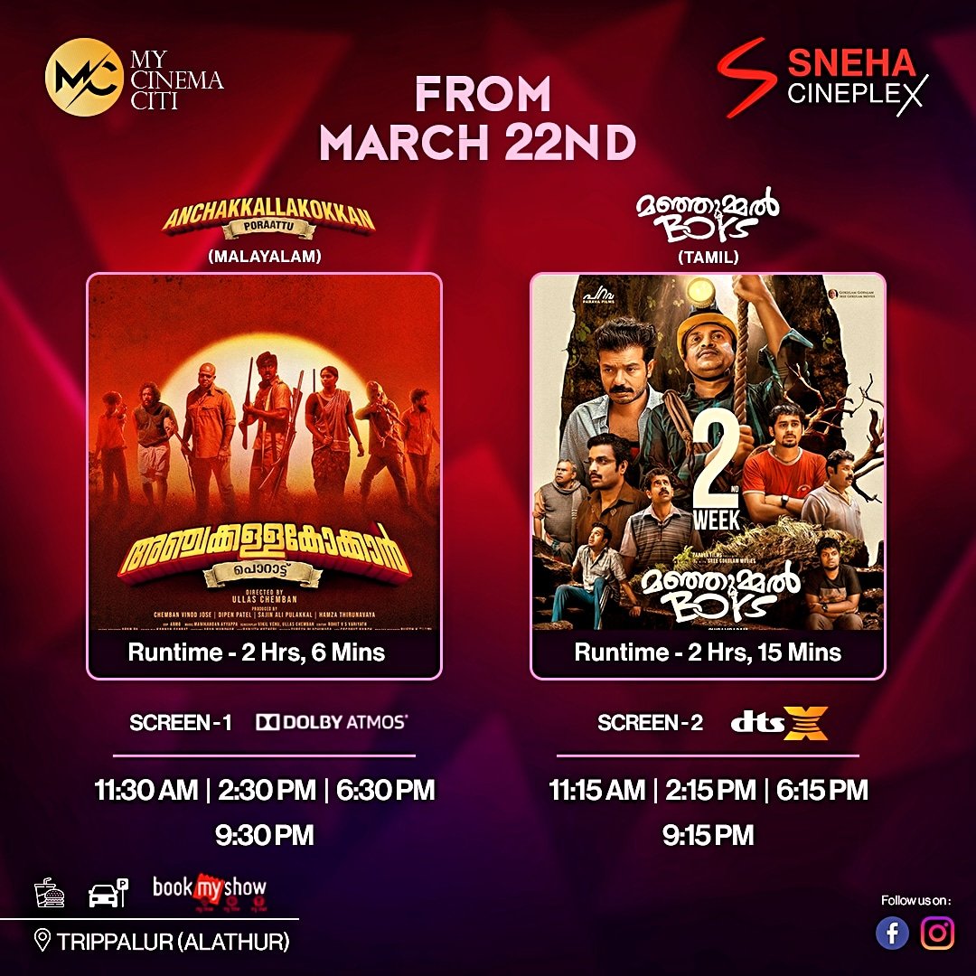 Immerse yourself in the silver screen at the SNEHA CINEPLEX a premier movie theater designed for your ultimate cinematic experience. DOLBY ATMOS screens: Get swept away by the immersive sound of Dolby Atmos, where sound moves all around you, including overhead, for a truly multi-dimensional experience. NEC 2K projection: Witness stunning visuals with sharp details and vibrant colors on our high-quality 2K RGB Laser projectors. Sofa, Lounger Seating ,Kick back and relax in our Sofs , Loungerv equipped with ample legroom for maximum comfort. Convenient online booking: Skip the lines and secure your seats from the comfort of your own home with our user-friendly online booking . Ample parking ,Delicious cafeteria&Spotless restrooms.